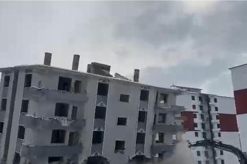 Kahramanmaraş merkezli depremlerde Elazığ’da ağır hasar gören binaların yıkımları sürüyor. Bu çerçevede binanın yıkım anı kameralara yansıdı.