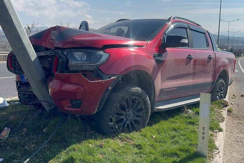 Elazığ’da sürücüsünün direksiyon hakimiyetini kaybettiği kamyonet, aydınlatma direğine çarptı.