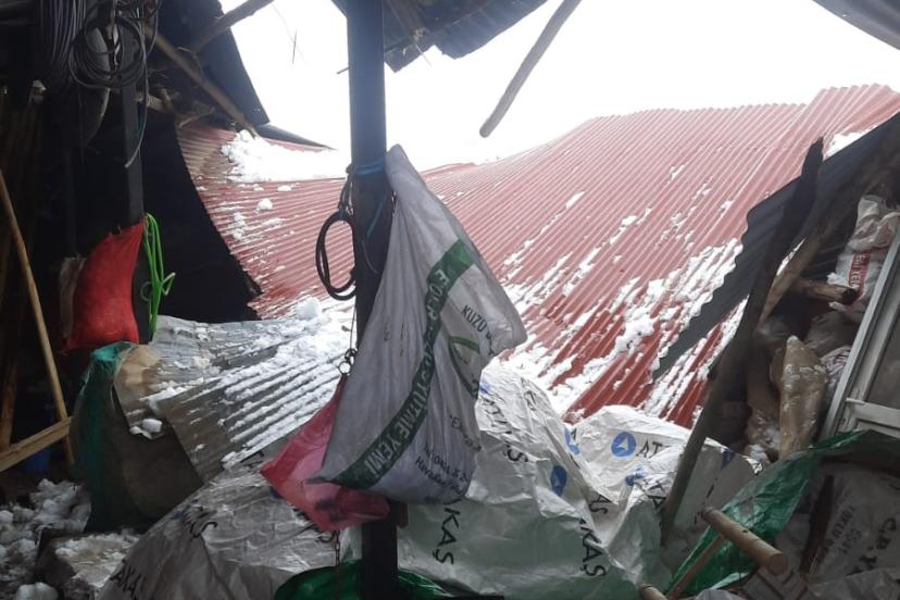 Elazığ’ın Maden ilçesine bağlı Bahçelere köyünde gece etkili olan şiddetli fırtına ve kuvvetli rüzgar, büyük hasara yol açtı. Fırtına ve kar nedeniyle Selahattin Baş’a ait, köyün tek marketinin çatısı çöktü. Çatının çökmesiyle markette bulunan çok sayıda ürün enkaz altında kalırken, iş yeri kullanılamaz hale geldi. Olayda can kaybı ya da yaralanan olmazken Selahattin Baş, yaşanan bu durumdan dolayı yetkililerden yardım beklediğini ifade etti.