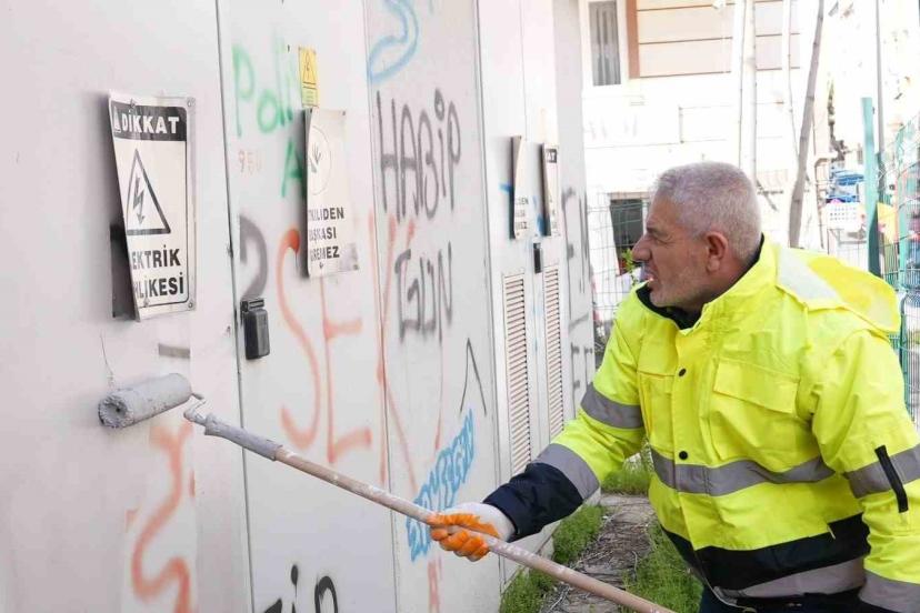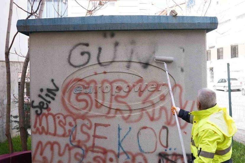 Elazığ’da kent estetiğini korumak amacıyla Elazığ Belediyesi Ulaşım Hizmetleri Müdürlüğü ekipleri, kent genelinde görüntü kirliliğine neden olan duvar yazılarını temizleme çalışması yürütüyor. Bu kapsamda şehrin doğu ve batı kısımlarında yer alan park alanları, yaşam alanları, kamuya ait alanlar ve elektrik trafolarında ekipler, kent estetiğini bozan uygunsuz yazıların silinmesi için iki boya aracıyla sahada çalışma gerçekleştiriyor.