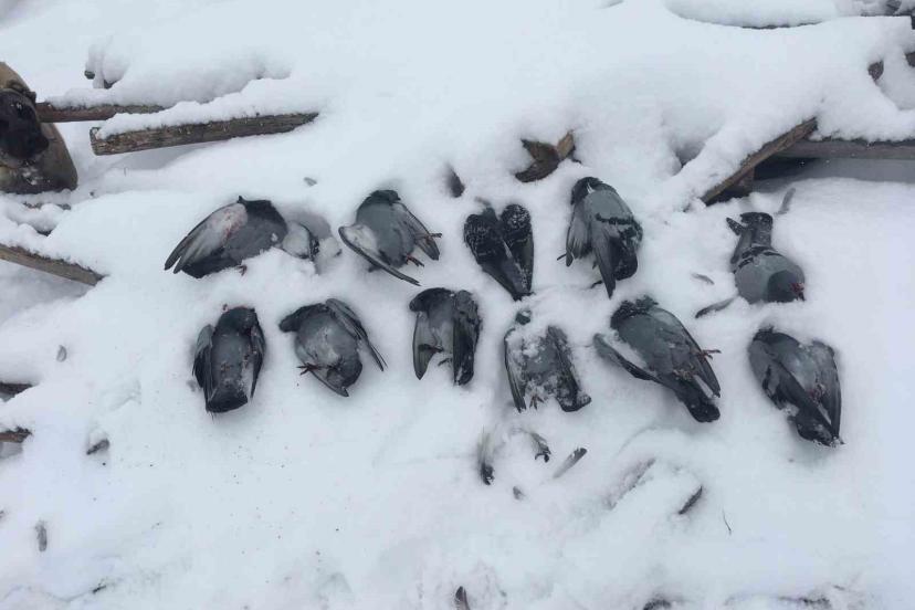 Elazığ’da onlarca güvercin donarak telef oldu