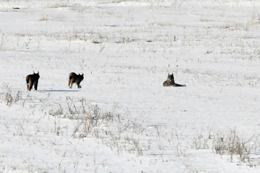 Bölgede etkili olan kar yağışı sonrası doğada yiyecek bulmakta zorlanan vaşak ailesinin köy kırsalına kadar indiği görüldü. Bir süre kar üzerinde ilerleyen vaşaklar, daha sonra gözden kayboldu.