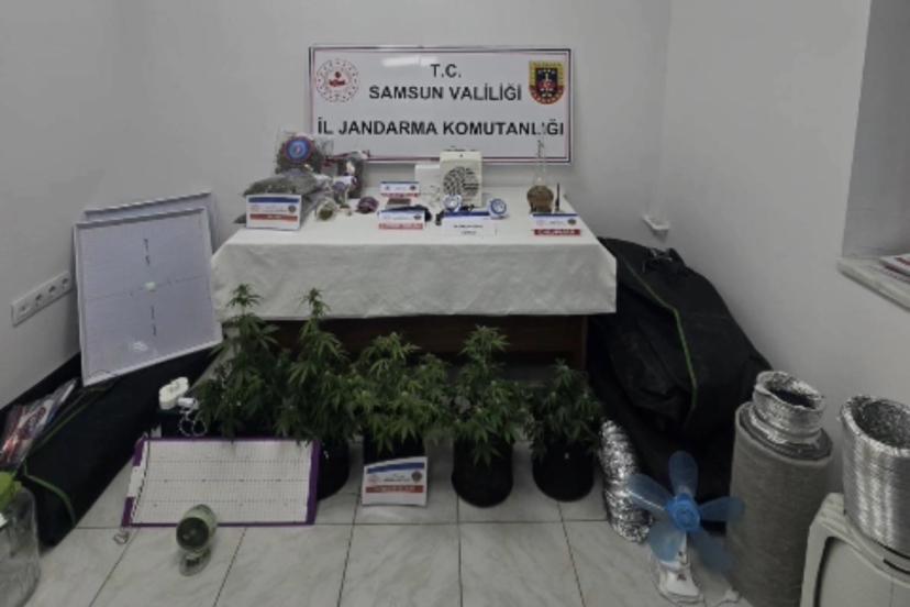 Edinilen bilgiye göre, 12 Şubat 2026 tarihinde Samsun İl Jandarma Komutanlığı ekipleri tarafından uyuşturucu ve uyarıcı madde ticaretinin önlenmesine yönelik yürütülen çalışmalar kapsamında Atakum ilçesinde 3 şahsın evlerinde uyuşturucu yetiştirdiği bilgisine ulaşıldı. Şüphelilerin ikametlerine eş zamanlı operasyon düzenleyen ekipler, elbise dolabının içerisine kurulan özel iklimlendirme sistemiyle saksılarda kenevir yetiştirildiğini tespit etti. Evlerde yapılan aramalarda 1 kilo 337 gram skunk maddesi, 1 adet hassas terazi, 4 adet uyuşturucu içme aparatı, 3 adet uyuşturucu öğütme aparatı, 5 kök kenevir ve 1 adet kurusıkı tabanca ele geçirildi.
