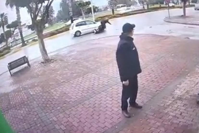 Antalya’nın Manavgat ilçesinde elektrikli bisiklet ile otomobilin çarpış çarpması sonucu meydana gelen kazada motorlu bisiklet sürücüsü yaralandı. Kaza anı güvenlik kamerasına yansıdı.