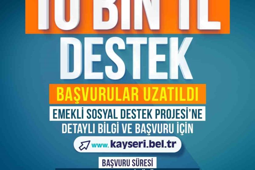 Kayseri Büyükşehir Belediyesi, dar gelirli emeklilere yönelik 10 bin TL’lik nakdi sosyal destek programında başvurular 4 Mayıs 2026 Pazartesi gününe kadar uzatıldı.