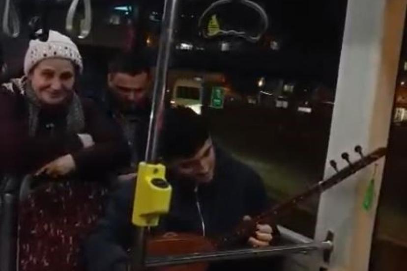 Eminönü-Arnavutköy seferini yapan İETT’ye ait bir otobüste yaşanan sürpriz anlar, yolculuğu adeta küçük bir konser salonuna çevirdi. Seyir halindeki otobüste bir yolcu sazını çıkararak türkü çalmaya başladı. Çalınan türküler vatandaşlara keyifli anlar yaşattı.