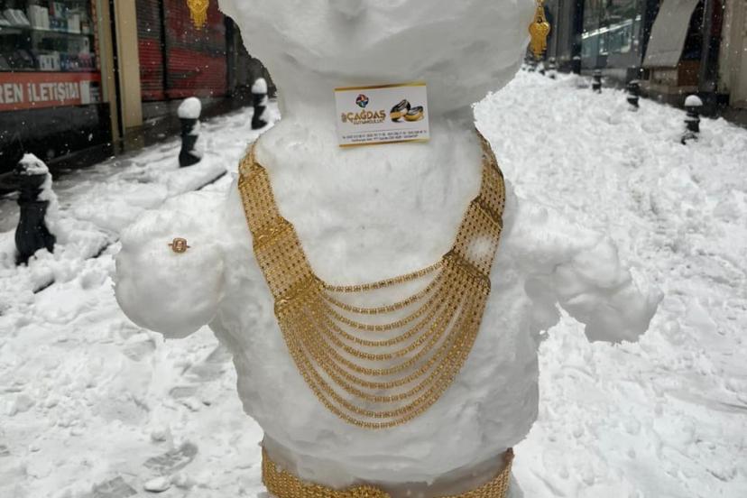 Gaziantep’te etkili olan kar yağışı ilginç görüntülere sahne oldu. İslahiye ve Nizip ilçesinde esnaf, müşteri gelmeyince kardan adamları "müşteri" yaptı. Nizip ilçesinde ise bir kuyumcu, kar yağışı nedeniyle müşteri gelmeyince iş yerinin önüne yaptığı kardan gelini altınlarla süsledi.