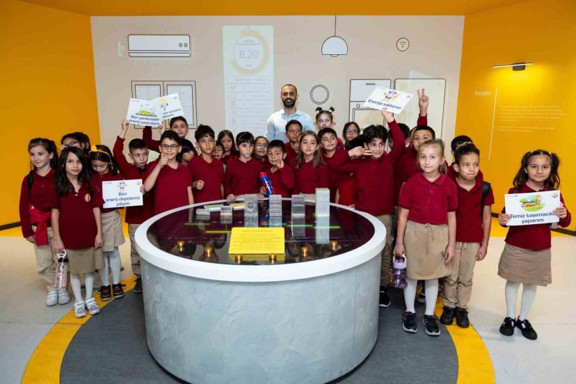 Butonlar, animasyonlar ve etkileşimli deneyimlerle tasarlanan Enerji Tüneli’ni keşfeden öğrenciler, iklim, şehir ve insan ekseninde kurgulanarak küresel ölçekten bireysel düzeye kadar enerji verimliliğini ve yenilenebilir kaynakların önemini vurgulayan Enerji Tüneli’nde doyasıya eğlendi.