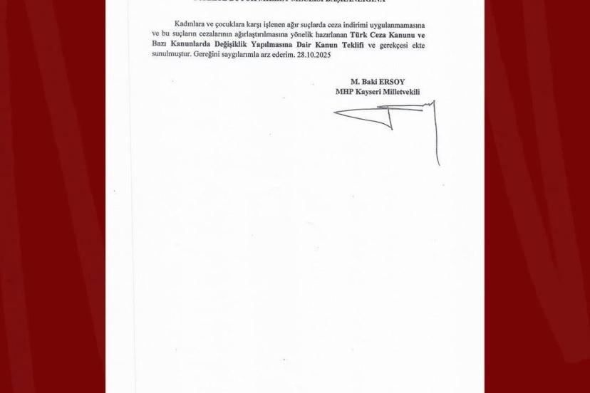 Milliyetçi Hareket Partisi (MHP) Kayseri Milletvekili Baki Ersoy, kadınlara ve çocuklara yönelik işlenen suçlara indirim yapılmamasına dair kanun teklifinde bulundu.
