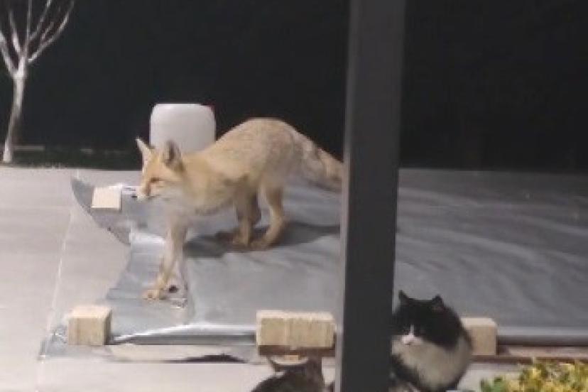 Görüntülerde, tilkinin cesur tavırları ile kedilerin kararlı savunması izleyenlerin ilgisini çekti.