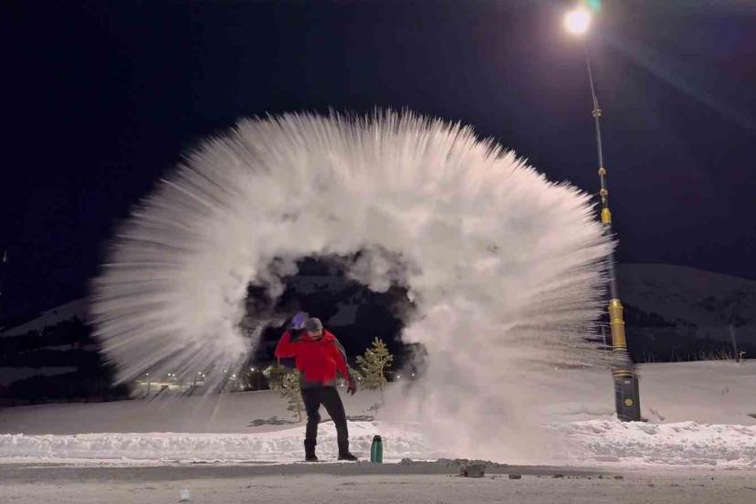 Erzurum’da havaların soğuması ile birlikte sosyal medyada yeni bir akım oluşmaya başladı. Evlerinden kaynar suyu kapan sokaklara çıkıp suyu havaya serperek ortaya çıkan görsel şöleni kayıt altına aldı. Bu güzel görüntüler sosyal medyada viral oldu. Uzundere ilçesinde termometreler eksi 25 dereceleri gördü. Erzurum’un bazı ilçelerinde hava sıcaklığı eksi 35 dereceye kadar ulaşırken hayat adeta donma noktasına geldi.
