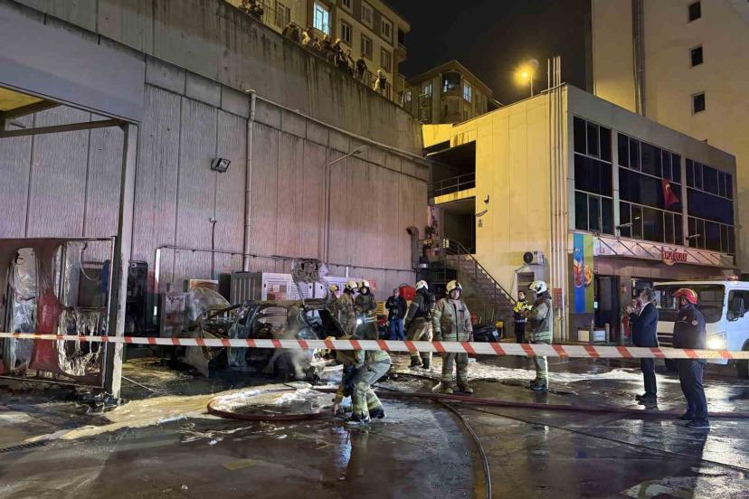 Esenyurt, E-5 karayolu yan yolda bulunan bir akaryakıt istasyonunda şarja bağlı bir elektrikli araç aniden alev alarak patladı.