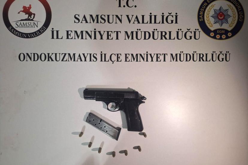 Samsun’un 19 Mayıs ilçesinde meydana gelen aile içi şiddet olayı sonrası yapılan aramada, eşini darbeden şahsın evinde silah ...