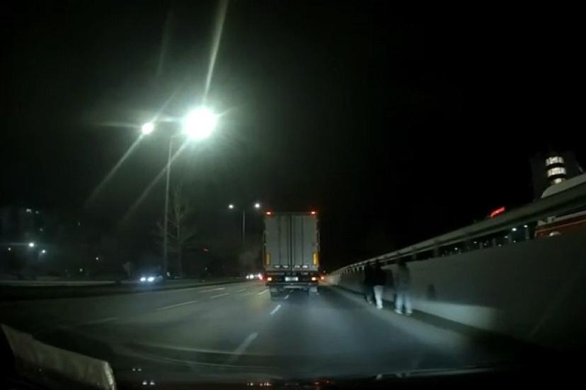 ? Ağır vasıta araçlarının ve otomobillerin yüksek süratle seyrettiği bölgede yürüyen şahısların, fark edilmelerini sağlayacak hiçbir reflektörlü kıyafet taşımamaları tehlikeyi iki katına çıkardı. O esnada yolda ilerleyen bir kamyon şoförü, karanlıkta adeta "görünmez" olan yayaları son anda fark etti. Şoförün dikkati ve ani manevrası sayesinde şahıslara çarpmaktan son saniyede kurtulduğu anlar, çevredeki vatandaşların kamerasına yansıdı.