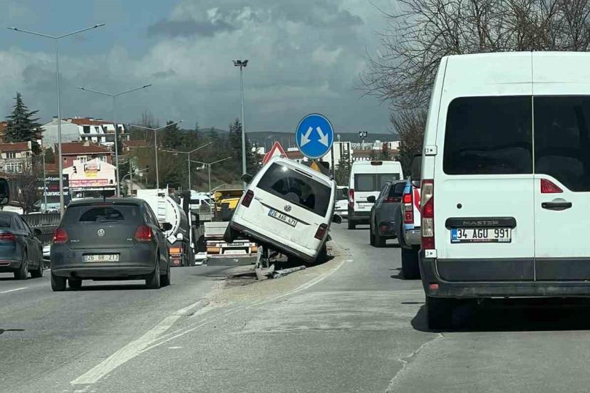 Olay, Eskişehir çevreyolu Esentepe dönüş varyantında meydana geldi. Edinilen bilgilere göre, 26 AAG 471 plakalı hafif ticari araç, seyir halindeyken Prof. Dr. Orhan Oğuz altgeçidi girişinde henüz bilinmeyen bir sebeple yol ayrımında bulunan bariyerlere çarptı. Çarpmanın etkisiyle araç, bariyerlerin üzerine çıkarak askıda kaldı.