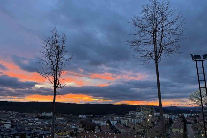 Eskişehir’de günün batışıyla birlikte gökyüzünde kartpostallık bir manzara oluştu. Güneşin batış anında yansıyan renkler, şehrin siluetiyle birleşerek seyirlik bir görüntü meydana getirdi. Akşam saatlerinde beliren bu doğal güzellik, şehrin pek çok noktasından eşsiz bir manzara sundu.