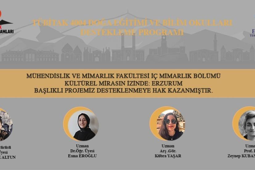 Erzurum Teknik Üniversitesi (ETÜ) Mühendislik ve Mimarlık Fakültesi İç Mimarlık Bölüm Başkanı Dr. Öğr Üyesi İmran Kavaz Altun’un yürütücülüğünü yaptığı "Kültürel Mirasın İzinde: Erzurum" başlıklı proje, TÜBİTAK 4004 Doğa Eğitimi ve Bilim Okulları Destekleme Programı’nın 19. çağrısı kapsamında desteklenmeye hak kazandı.