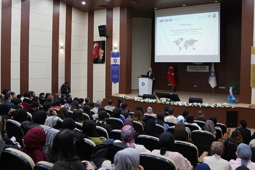 ETÜ ve EBB koordinasyonunda, İktisadi ve İdari Bilimler Fakültesi, Sağlık Bilimleri Fakültesi ile Bilim ve Fikir Topluluğu’nun iş birliğiyle gençlerin insani yardım süreçlerindeki rolünü ve etik sorumluluklarını mercek altına almak amacıyla düzenlenen programa ETÜ Rektörü Prof. Dr. Bülent Çakmak, Erzurum Büyükşehir Belediyesi Genel Sekreteri Zafer Aynalı, Dünya Sağlık Örgütü (DSÖ) Türkiye Ofisi Başkanı Dr. Tasnim Atatrah, akademisyenler ve çok sayıda öğrenci katıldı.