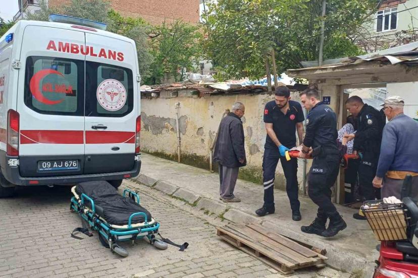 Aydın’ın Efeler ilçesinde müstakil bir evin bahçesinde düşen yaşlı kadın için ekipler seferber olurken, kapının açılmasıyla yerde yatan A.
