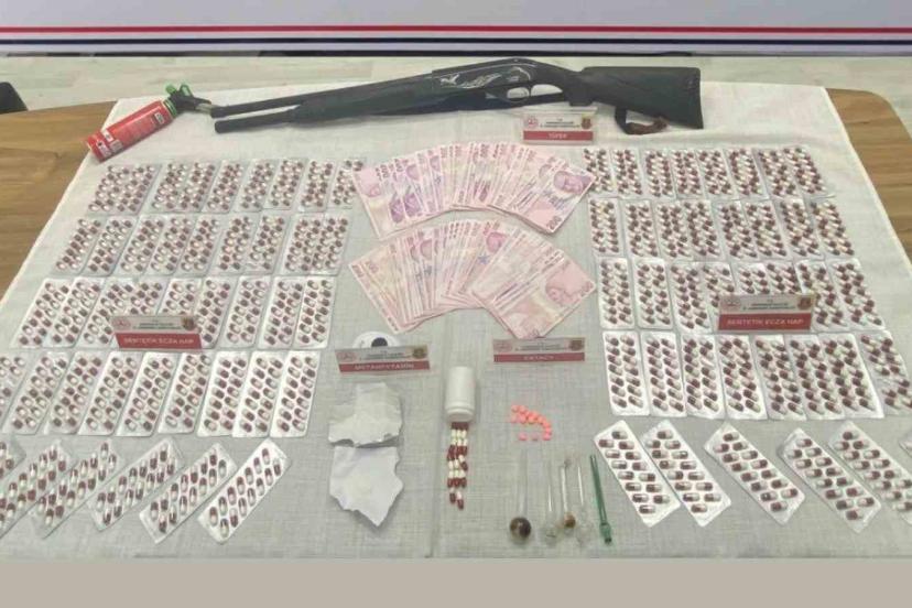Kırıkkale Cumhuriyet Başsavcılığının talimatıyla İl Jandarma Komutanlığı ekiplerince uyuşturucu madde ticaretine yönelik operasyon düzenlendi. Edinilen bilgiye göre, Yahşihan ilçesinde jandarma ekiplerince A.A. (57) yönetimindeki hafif ticari araç durduruldu. Ekipler tarafından narkotik köpeğiyle araçta ve şüphelinin evinde yapılan aramada bin 133 adet ecza hapı, 13 adet extacy, 4 gram metamfetamin, 5 adet uyuşturucu kullanma aparatı, ruhsatsız av tüfeği ve 20 bin lira nakit para ele geçirildi. Cumhuriyet savcısının talimatıyla gözaltına alınan şüpheli, işlemlerinin ardından çıkarıldığı mahkemece tutuklanarak cezaevine gönderildi.