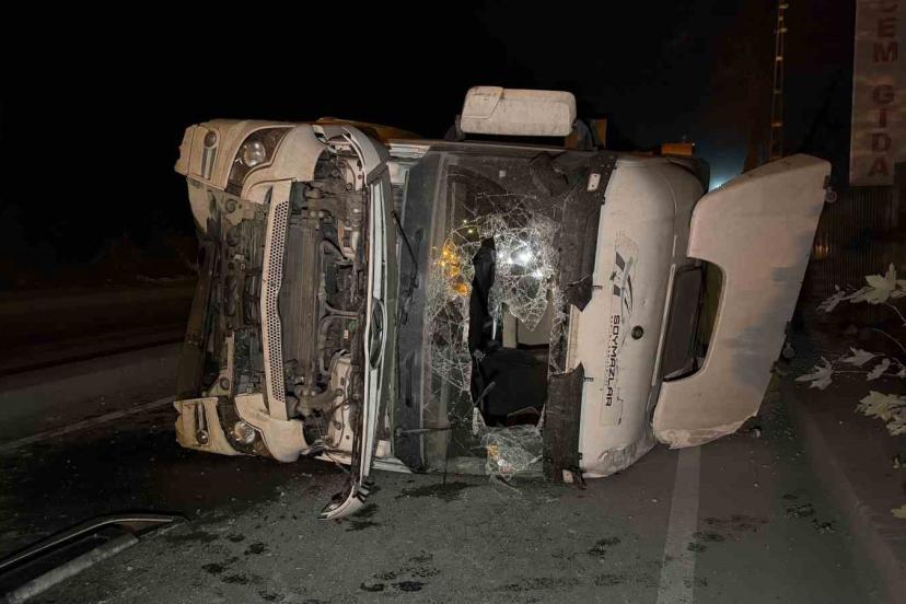 Eyüpsultan’da akşam saatlerinde seyir halindeki hafriyat kamyonu, sürücünün kontrolü kaybetmesi üzerine ters istikamete girerek yan yattı. Kazada kamyon sürücüsü yaralandı.