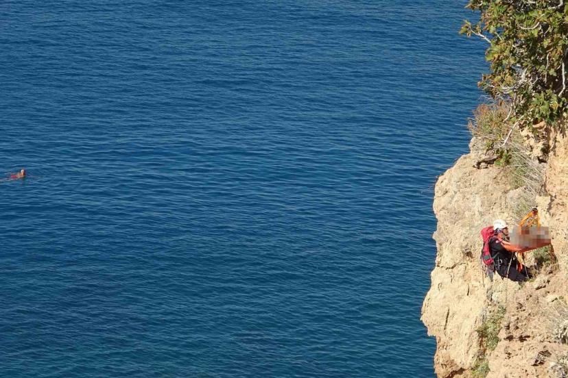 Falezlerde ölü bulunan adamın cenazesinin 2 saat süren alınma operasyonunu yüzerek izlediler