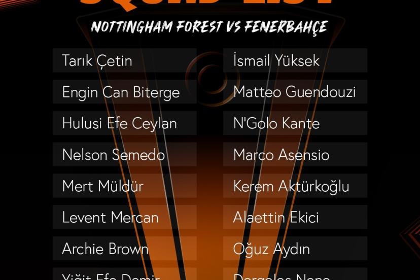 Fenerbahçe’nin yarın UEFA Avrupa Ligi son 16 play-off turunda İngiliz ekibi Nottingham Forest ile oynayacağı maçın kamp kadrosu belli oldu.