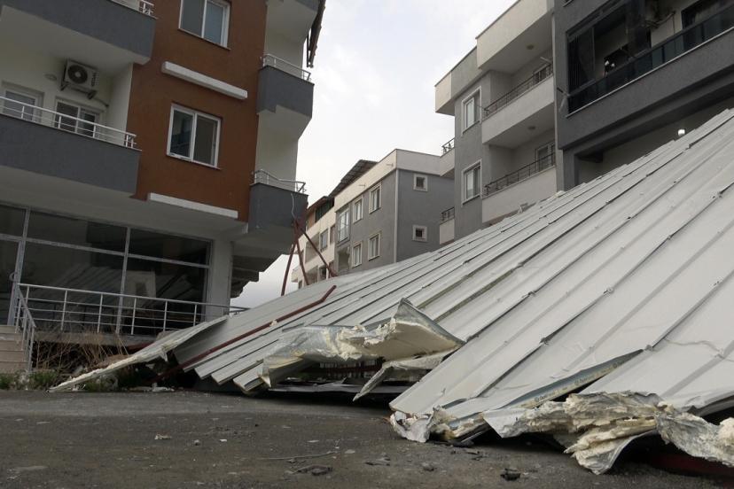 Hatay’da kuvvetli fırtınanın uçurduğu çatının park halindeki 3 otomobil ve 1 motosiklete zarar verdiği anlar güvenlik kamerasına yansıdı.