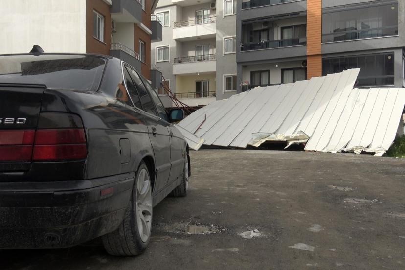 Meteorolojinin yağışlı hava ve fırtına uyarısında bulunduğu Hatay’da akşam saatlerinde yağış ve fırtına etkisini göstermeye başladı. Sahil ilçeleri olan; İskenderun, Arsuz, Dörtyol, Payas ve Dörtyol’da fırtına hayatı olumsuz etkiledi. Akşam saatlerinden sabahın ilk ışıklarına kadar kendini gösteren kuvvetli fırtına çevreye zarar verdi. Arsuz ilçesinin Karaağaç Mahallesi’nde etkili olan fırtına apartmanın çatısını uçurdu. Uçan çatı park halindeki 3 otomobil ve 1 motosiklete zarar verdi. Çatının uçarak araçlara zarar verdiği anlar anbean kameraya yansıdı.
