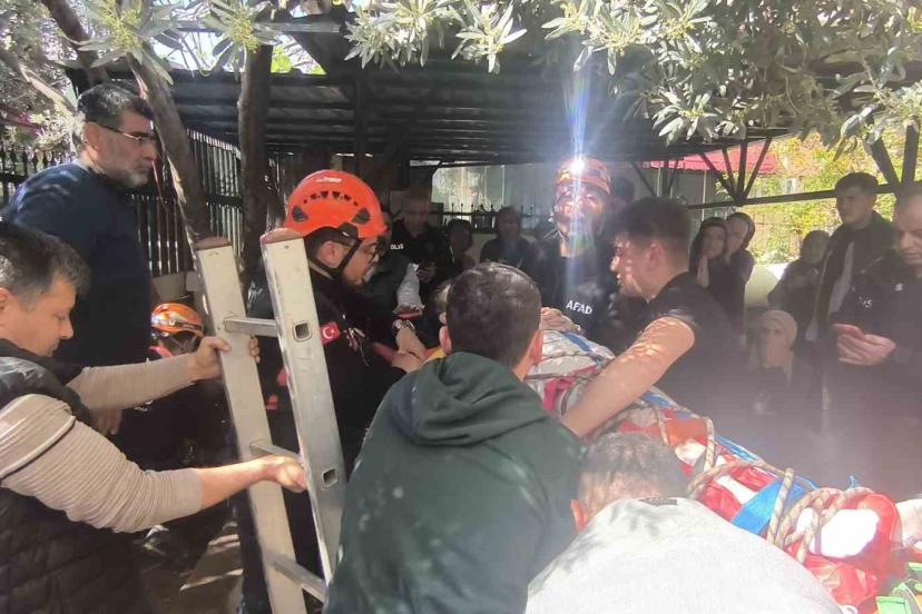 İhbarla adrese Antalya Büyükşehir Belediyesi İtfaiye Daire Başkanlığı kurtarma ekibinin yanı sıra Afet ve Acil Durum Yönetimi Başkanlığı (AFAD), sağlık ve polis ekipleri sevk edildi. Adrese gelen ekipler ilk olarak merdiven yardımıyla küçük çocuğun yanına inerek sağlık durumunu kontrol etti. Bacağında ve vücudunda kırıklar olduğu tespit edilen küçük çocuk ip yardımıyla sedyeye sabitlendi. Bu sırada çukura düşen oğlunun kurtarılmasını endişeli gözlerle izleyen anne Şahinet Yılmaz’ı yakınları ve komşuları sakinleştirdi.