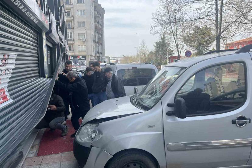 Tekirdağ Çorlu’da fren yerine gaza basan sürücü, aracıyla dikiş makinelerinin satıldığı dükkana girdi.