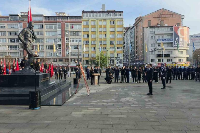 Tören, Vali Musa Işın, Tuğgeneral Mustafa Baş ve Belediye Başkanı Eyüp Kahveci’nin Atatürk Anıtı’na çelenk sunumuyla başladı. Çelenklerin sunulmasının ardından, Gazi Mustafa Kemal Atatürk’ün ebediyete intikal ettiği saat olan 09.05’te sirenler eşliğinde 2 dakikalık saygı duruşunda bulunuldu.