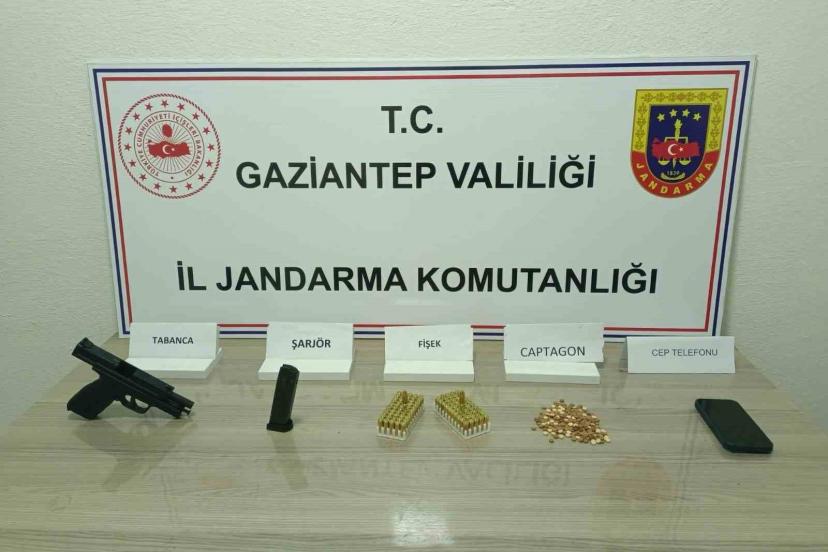 Gaziantep İl Jandarma Komutanlığı ve Cumhuriyet Başsavcılığı koordinesinde kaçakçılıkla ve uyuşturucu ile mücadeleye yönelik çalışma yapıldı. Çalışma çerçevesinde, Nurdağı ilçesinde uyuşturucu veya uyarıcı madde imal ve ticareti yaptığı tespit edilen M.A. isimli şahıs yol kontrol faaliyeti esnasında durduruldu. Şahsın aracında ve üzerinde yapılan aramada 200 adet captagon hap, 1 adet ruhsatsız tabanca ve şarjörü, 102 adet tabanca mermisi, 1 adet cep telefonu ele geçirildi.