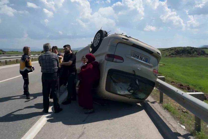 Gaziantep’te, lastiğinin patlaması sonucu kontrolden çıkarak, takla atıp devrilen minibüsteki 3 kişi yara almadan kurtuldu.