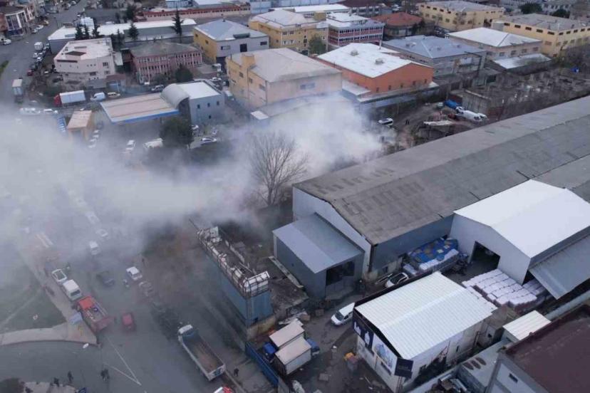 Gaziosmanpaşa’da avize atölyesinin deposunda yangın çıktı: Ekiplerin söndürme çalışması havadan görüntülendi