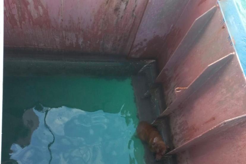 Hatay’da balıkçı barınağında geminin denize açılan havuzuna düşerek mahsur kalan köpeği itfaiye kurtardı.