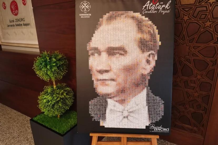 Germencik Belediyesi koordinesinde 23 Nisan’da anlamlı bir projeye imza atıldı. Hayata geçirilen "Atatürk Çocukları" projesi kapsamında, 23 Nisan Ulusal Egemenlik ve Çocuk Bayramı’na özel olarak dikkat çeken bir çalışma gerçekleştirildi. Tiyatro kursu eğitmeni Sermin Atik Kaya’nın öncülüğünde yürütülen projede, ilçede yaşayan 500’ün üzerinde çocuğun fotoğrafları bir araya getirildi. Toplam 3 bin 600 kareden oluşan çalışma sonucunda, Ulu Önder Mustafa Kemal Atatürk’ün portresi oluşturuldu. Ortaya çıkan eser hem görselliği hem de taşıdığı anlamla büyük beğeni topladı. Projede yer alan çocukların fotoğraflarını portre içerisinde gören aileler ise duygusal anlar yaşadı.