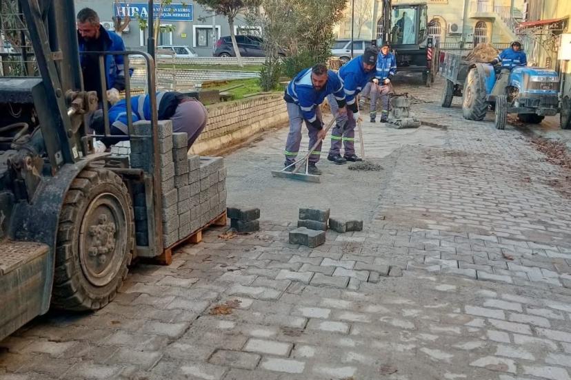Aydın’ın Germencik ilçesinde saha çalışmalarını sürdüren belediye ekipleri, bozulan zeminlerin onarımını ve parke taşı tamiratı çalışmaları gerçekleştirdi.
