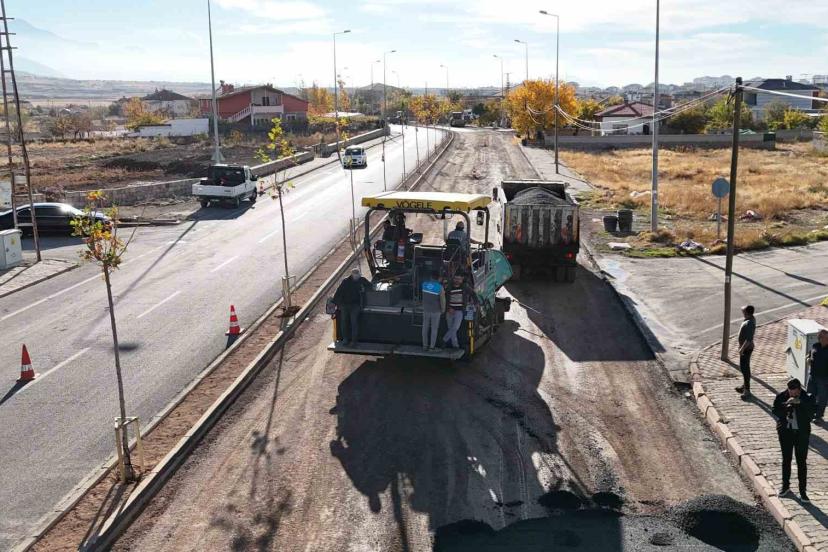 Melikgazi Belediyesi Gesi Mimarsinan Caddesi’nde 1.5 km mesafede 3 bin 500 tonluk asfalt yenileme çalışması, orta refüj ve ağ...