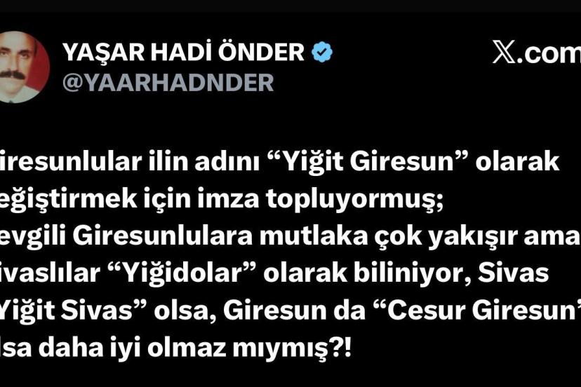 Giresun’un adının önüne "Yiğit" unvanının eklenmesi için başlatılan imza kampanyası kısa sürede büyük ilgi görürken, Sivas’tan tepki geldi.