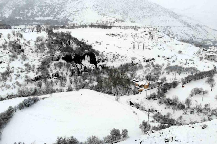 Erzincan kent merkezine 35 kilometre uzaklıktaki Kalecik köyünde, 9 ayrı kaynağın birleşmesiyle oluşan ve yaklaşık 40 metreden dökülen Girlevik Şelalesi’nde kar kalınlığı 20 santimetreye ulaştı. Kısmen donan şelalede oluşan buz sarkıtları, beyaz örtüyle birleşerek görsel güzellik oluşturdu.