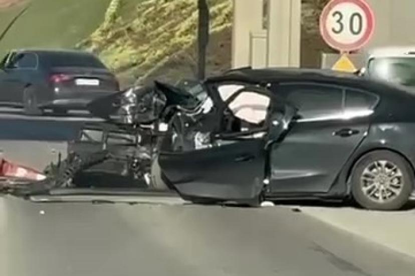 Gişelere çarpan otomobil kullanılamaz hale geldi, 2 kişi ağır yaralandı