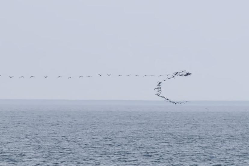 Artvin’in Hopa ilçesinde kaydedilen görüntüler, Karadeniz kıyı hattındaki göçmen kuş hareketliliğini bir kez daha görüntülendi. Göç yolculuğu sırasında göçmen kuşların sergilediği senkronize uçuş hareketleri, Hopa açıklarında deniz yüzeyine yakın şekilde görüntülendi.