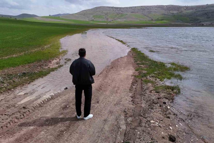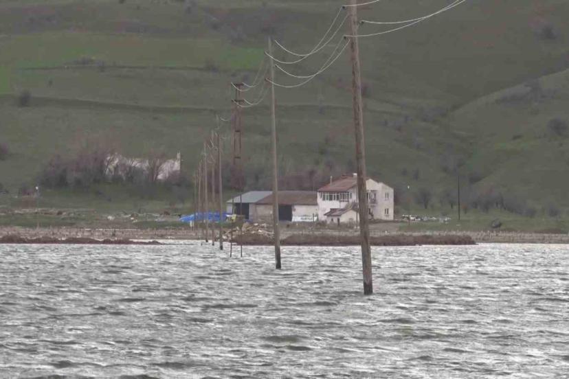 Sivas’ta etkili olan yoğun yağışlar, yaz aylarında kuruyan ve bir damla dahi su kalmayan Bingöl Gölü’nü yeniden canlandırdı. Dolup taşan göl, çevredeki araziyi ve elektrik direklerini sular altında bıraktı.