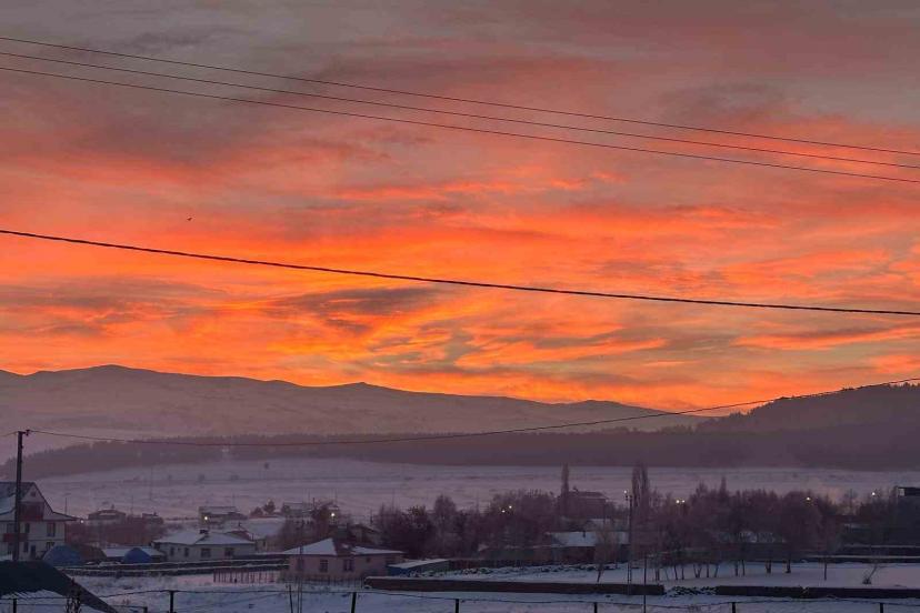 Ardahan’da gün doğumuyla kızıla bürünen gökyüzü görsel şölen oluşturdu.