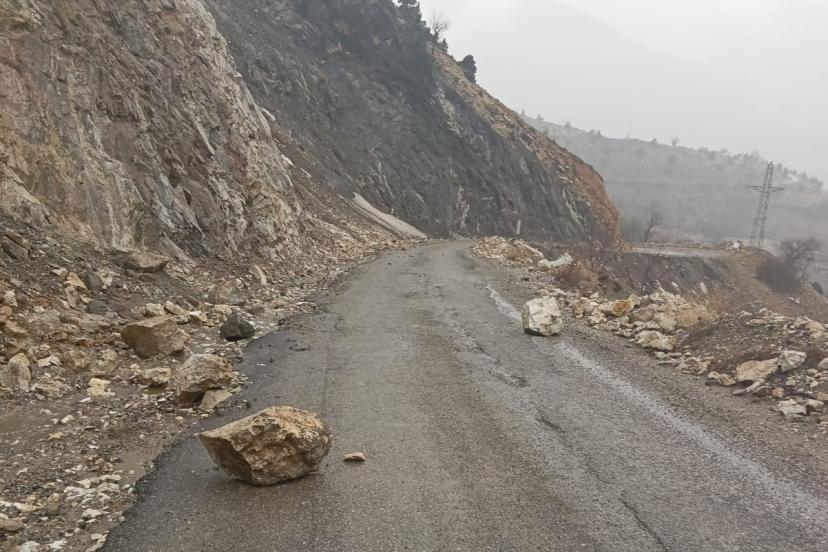 Gölbaşı ilçesine bağlı Hamzalar köyünde akşam saatlerinde etkili olan sağanak yağış, heyelana neden oldu. Yağış sırasında dağdan kopan kaya parçaları karayoluna düştü.