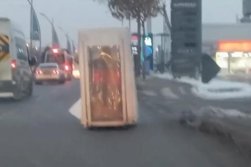 Olay, akşam saatlerinde Malatya-Ankara karayolu Şehirler Arası Otobüs Terminali (MAŞTİ) mevkiinde meydana geldi. Edinilen bilgilere göre, Ankara istikametine seyir halinde olan bir sürücünün elektrikli motosikletini tamamen kapatan ve dolabı andıran brandalarla yolculuk yaptığı görüldü. Yoldan geçen vatandaşların cep telefonlarıyla kaydettiği olayda sürücü, çevredeki şaşkın bakışlara aldırış etmeden yoluna devam ederken, ortaya çıkan manzara izleyenlere Sakar Şakir filmindeki "yürüyen dolap" sahnesini hatırlattı.