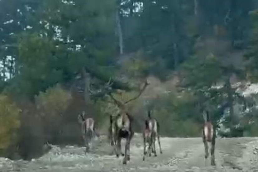 Göynük ilçesine bağlı Bozcaarmut köyü mevkiinde aracıyla ilerleyen bir vatandaş, orman yolunda gezen geyik sürüsünü fark etti. Geyikler, aracın sesini duymalarının ardından hızla ormana doğru kaçtı. O anlar vatandaş tarafından cep telefonu ile görüntülendi.
