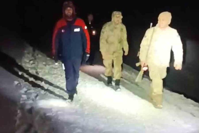 Yüksek zirvelerdeki kar kalınlığının fazla olması nedeniyle araçla vatandaşların yanına ulaşamayan AFAD ve Jandarma ekipleri yaklaşık 5 kilometre yürüyerek mahsur kalan vatandaşlara ulaştı.
