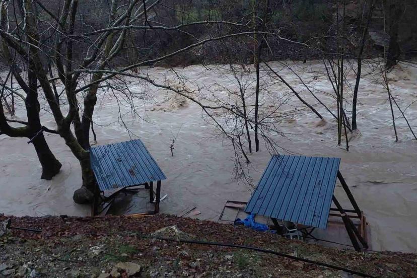 Şelalenin hemen önünde bulunan ve bölge turizmine hizmet veren işletme yükselen su nedeniyle hasar gördü.